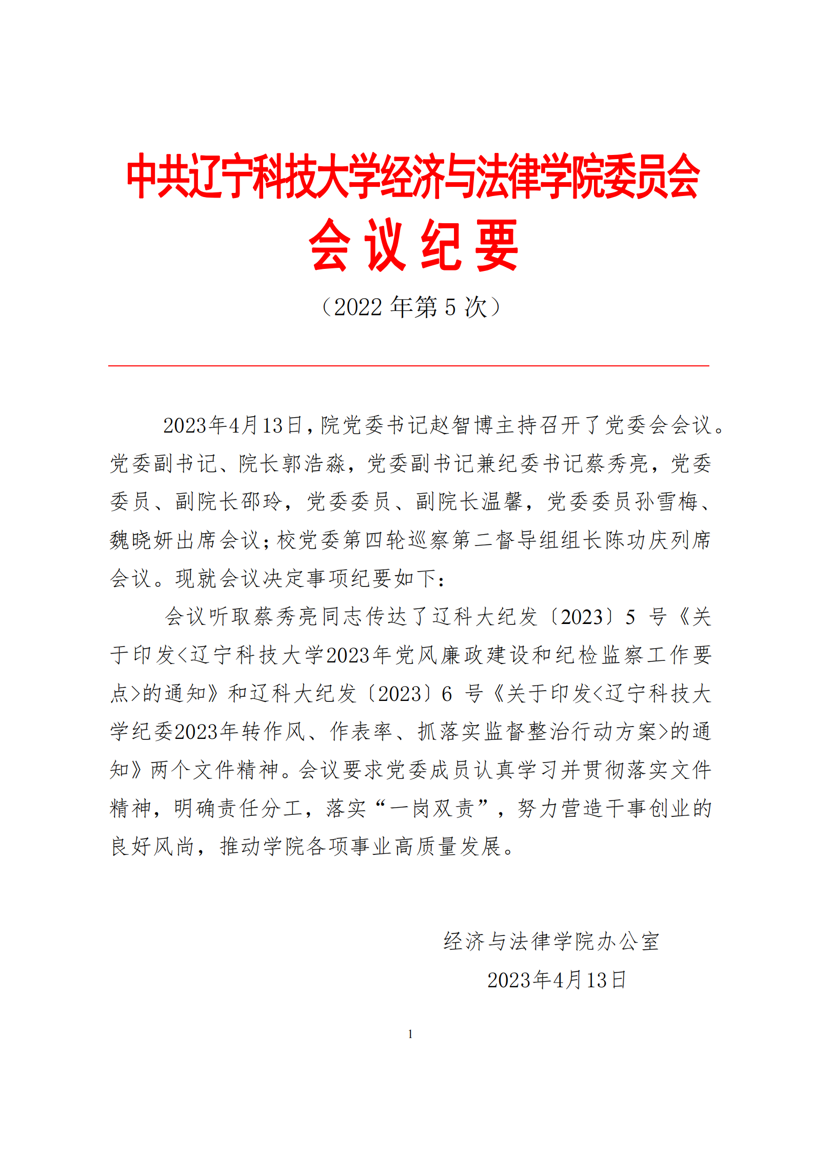 中共ayxty.com经济与法律学院委员会会议纪要(2023年第5次)