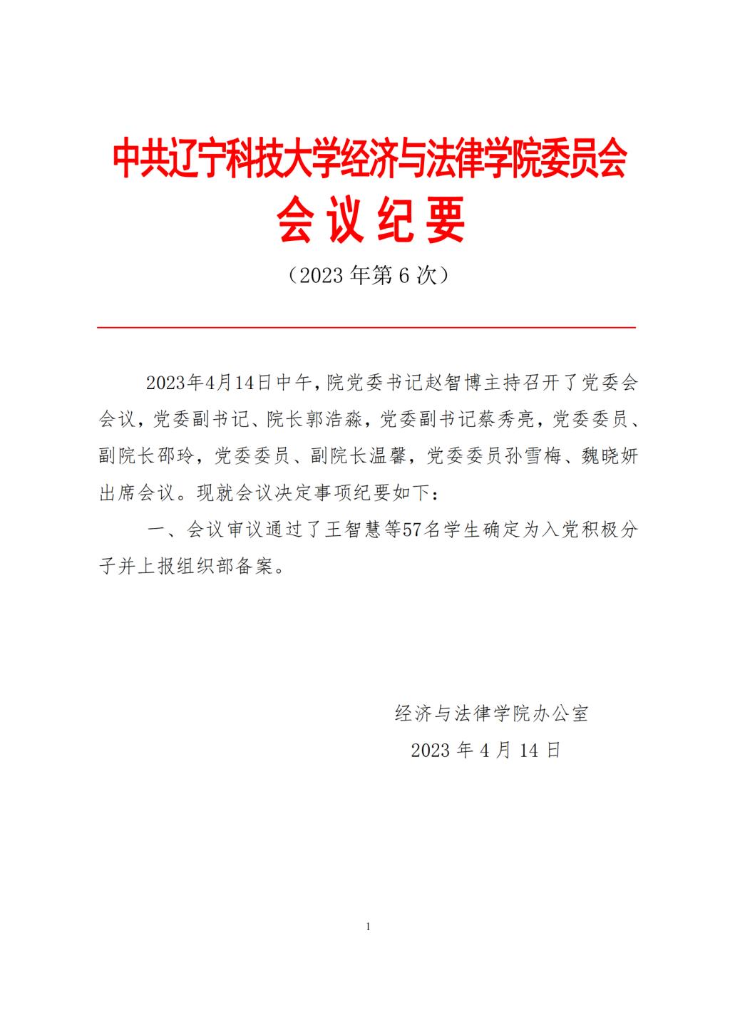 中共ayxty.com经济与法律学院委员会会议纪要(2023年第6次)