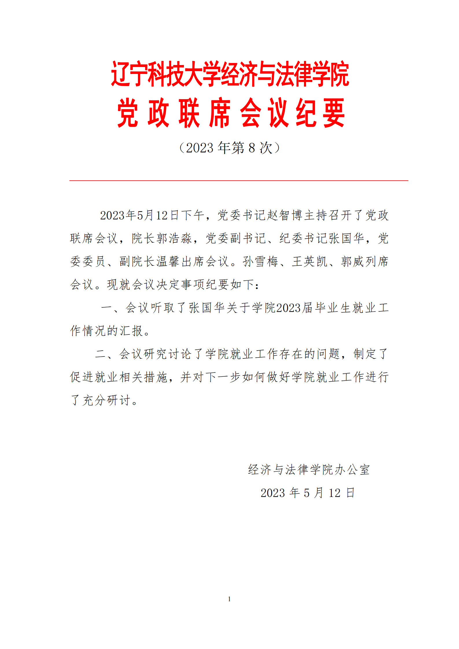 ayxty.com经济与法律学院党政联席会会议纪要(2023年第8次)