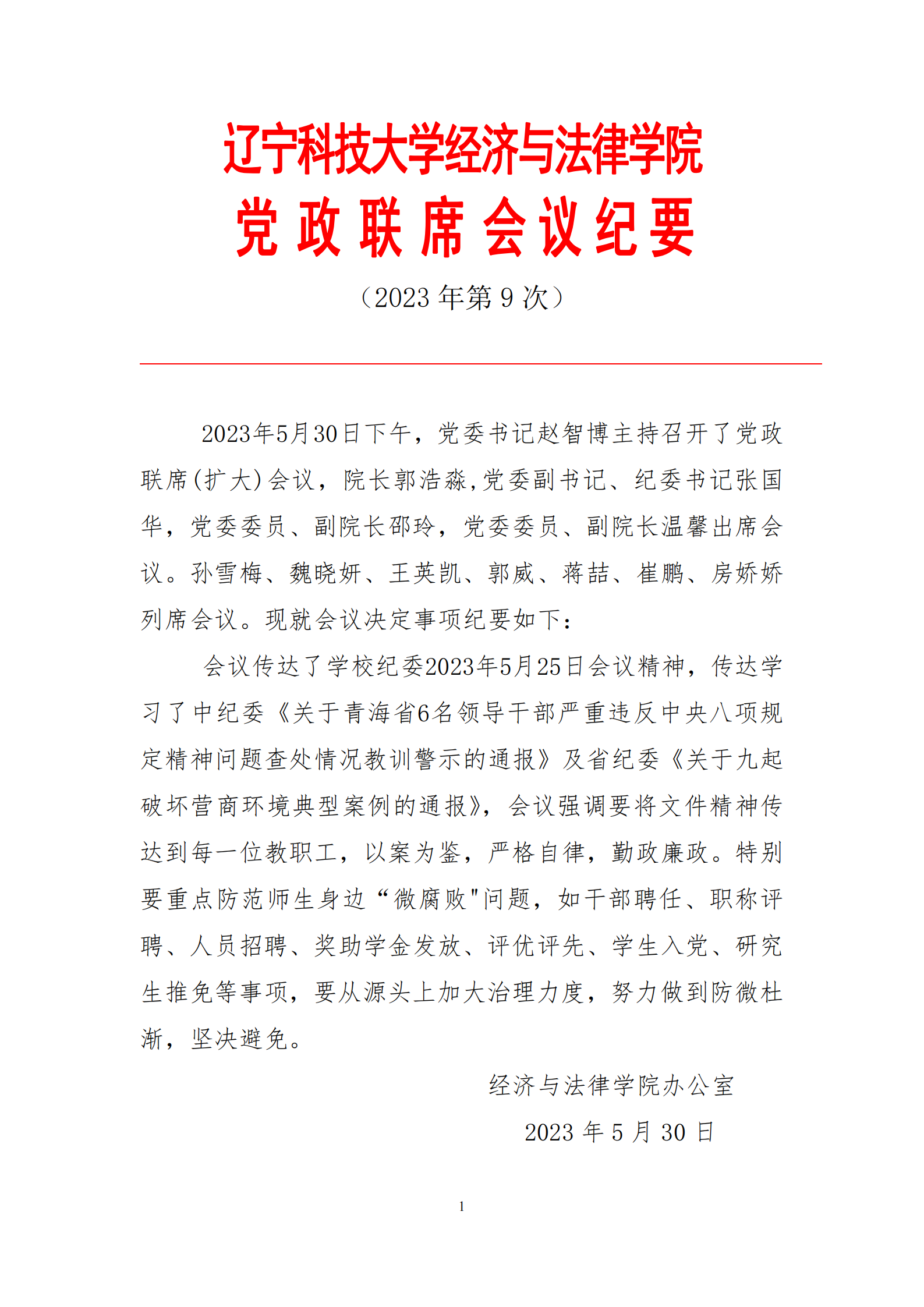 ayxty.com经济与法律学院党政联席会议纪要(2023年第9次)