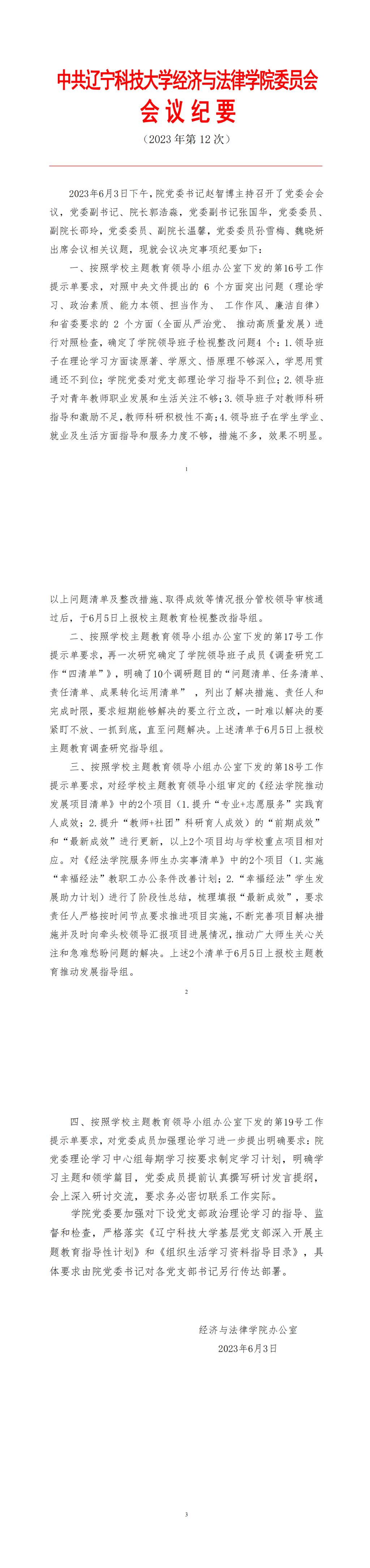 中共ayxty.com经济与法律学院委员会会议纪要(2023年第12次)