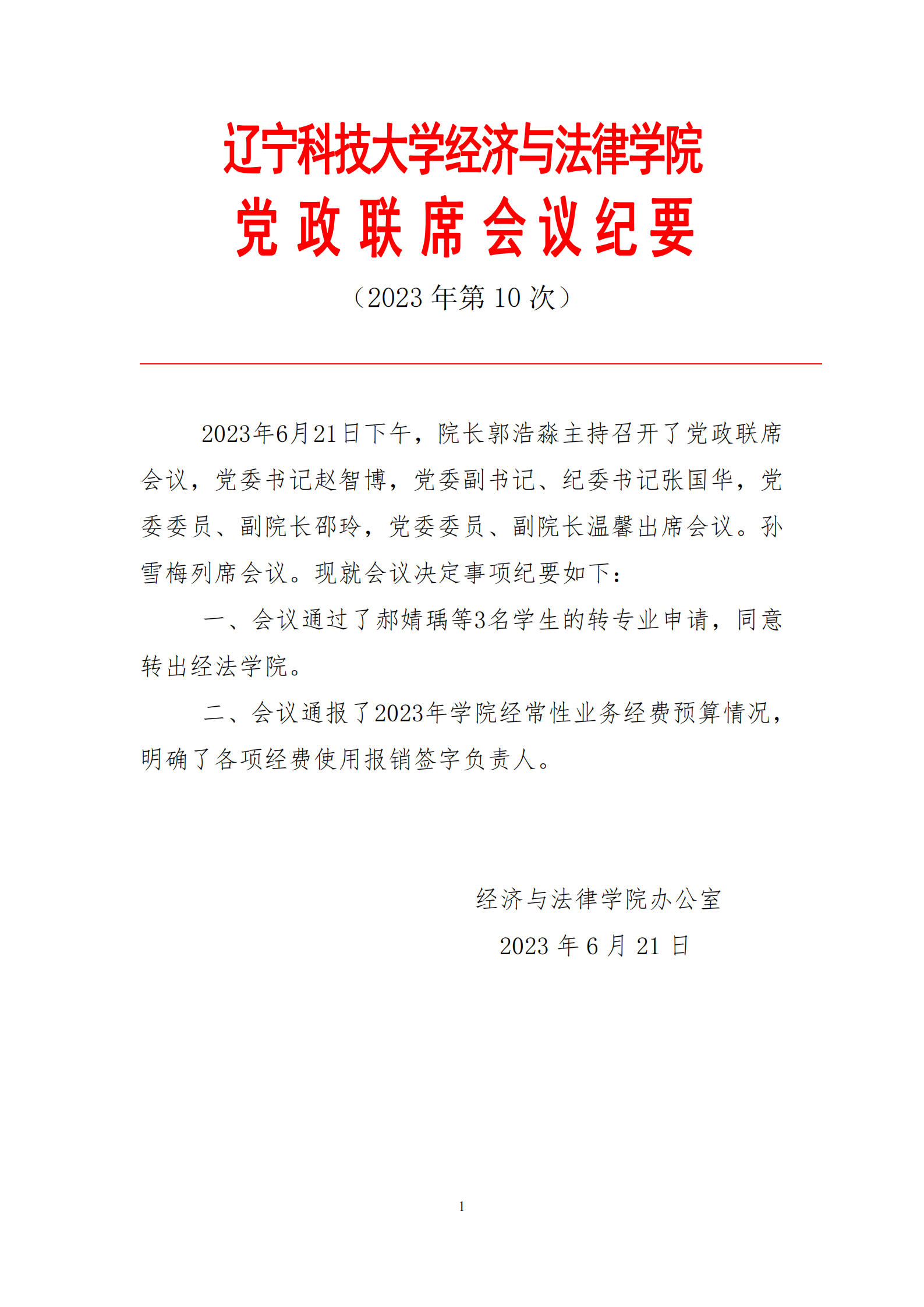 ayxty.com经济与法律学院党政联席会会议纪要(2023年第10次)