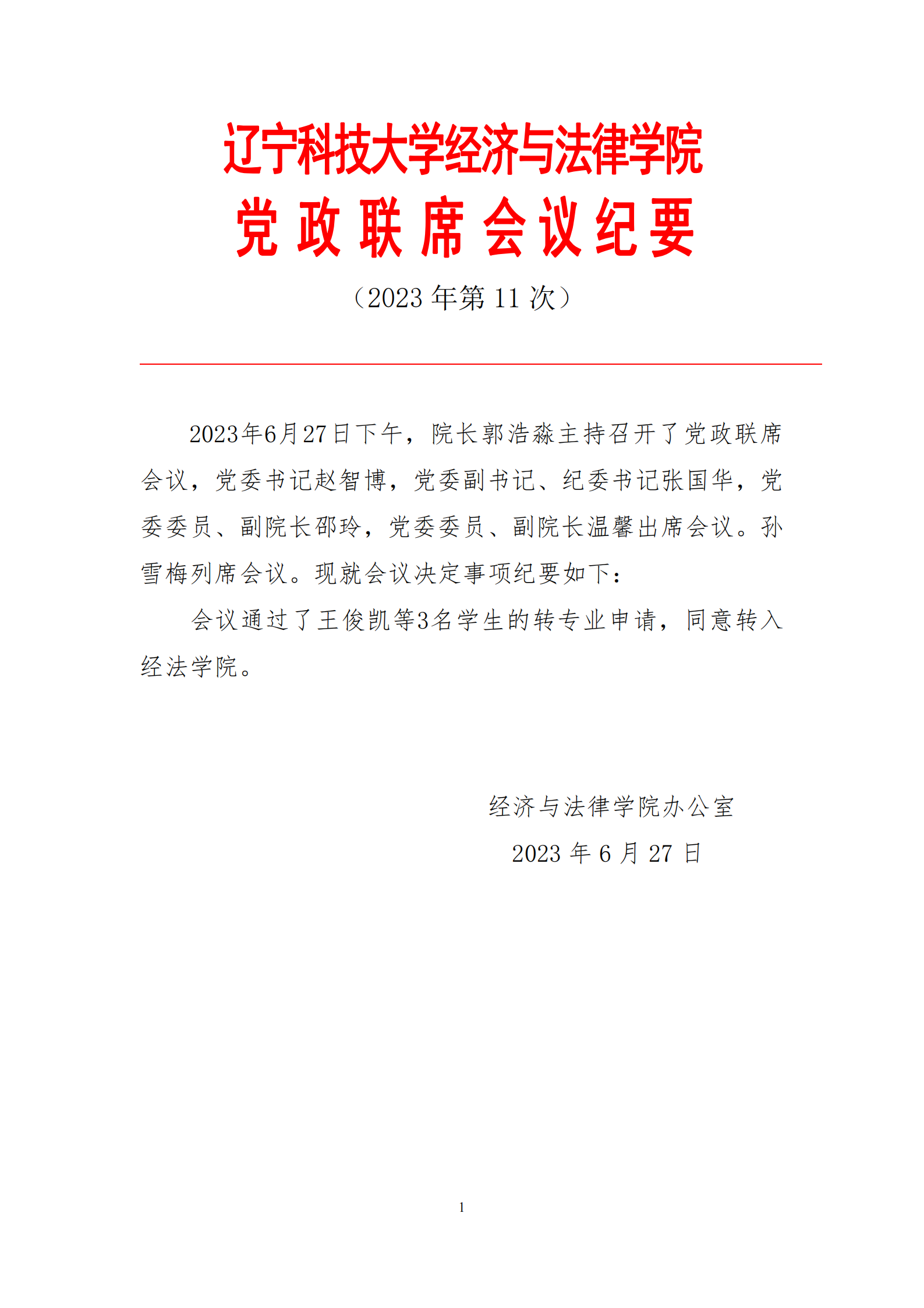 ayxty.com经济与法律学院党政联席会会议纪要(2023年第11次)