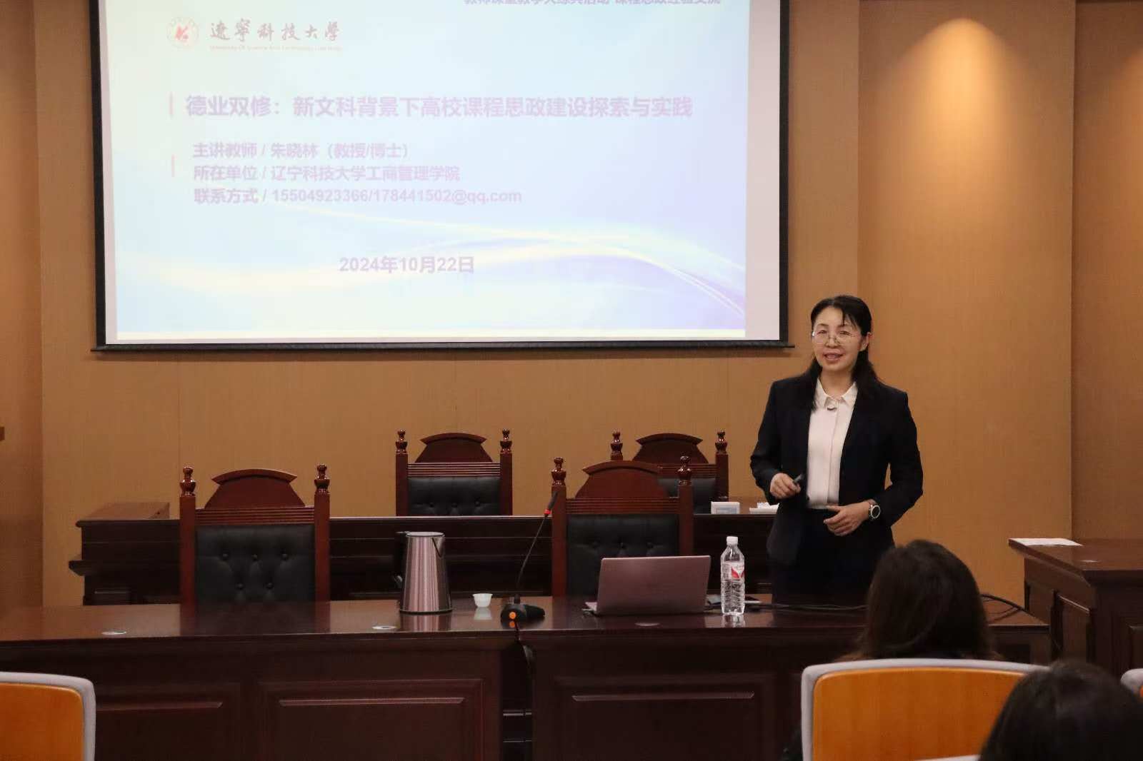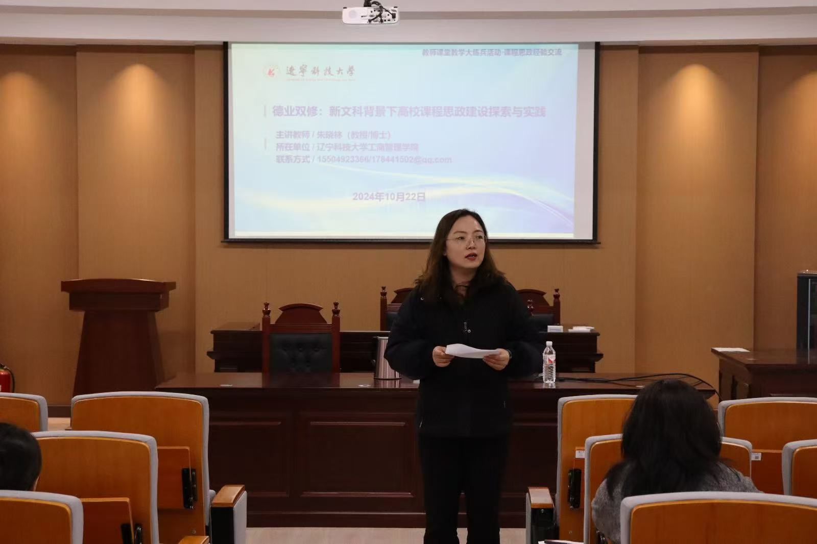 10月22日,经法学院邀请ayxty.com工商管理学院教授朱晓林于博识楼A402模拟法庭作课程思政经验交流报告。