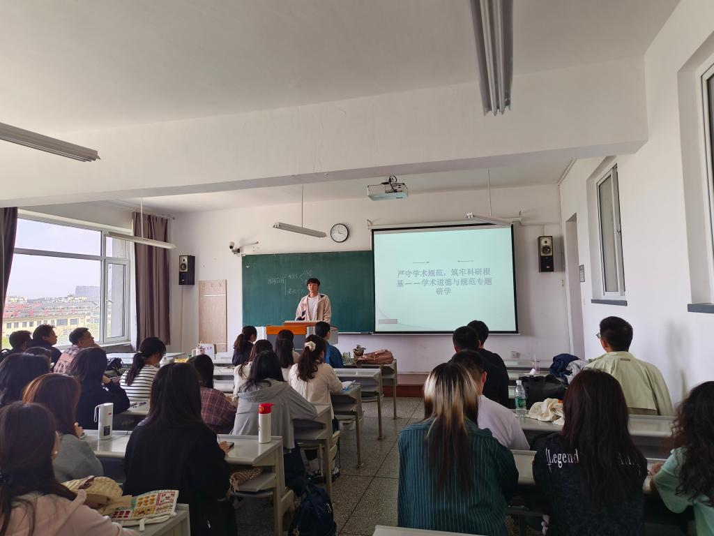 为进一步强化研究生学术规范意识,营造风清气正的学术环境,5月28日,经法学院组织开展学术道德与学术规范专题集中学习活动。院研究生会的三名同学化身主讲人,以“筑牢学术生命线,恪守学术准则”为主题,为54名法律硕士研究生带来了一场学术规范与道德建设的深度分享。