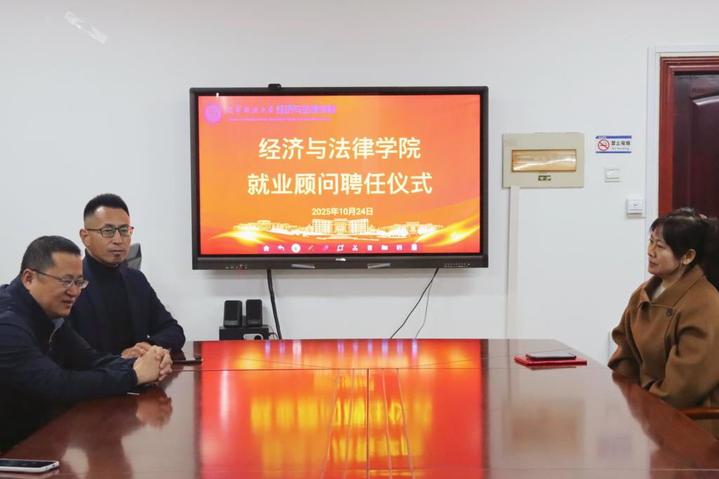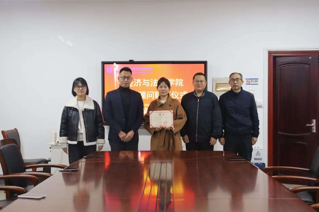 10月24日,经法学院于博识楼A305聘任鞍山市高新技术企业协会常务副秘书长赵红女士为就业顾问。学院党委书记赵智博、院长郭浩淼、委副书记张国华、学办主任李路云及学生代表参加了仪式。
