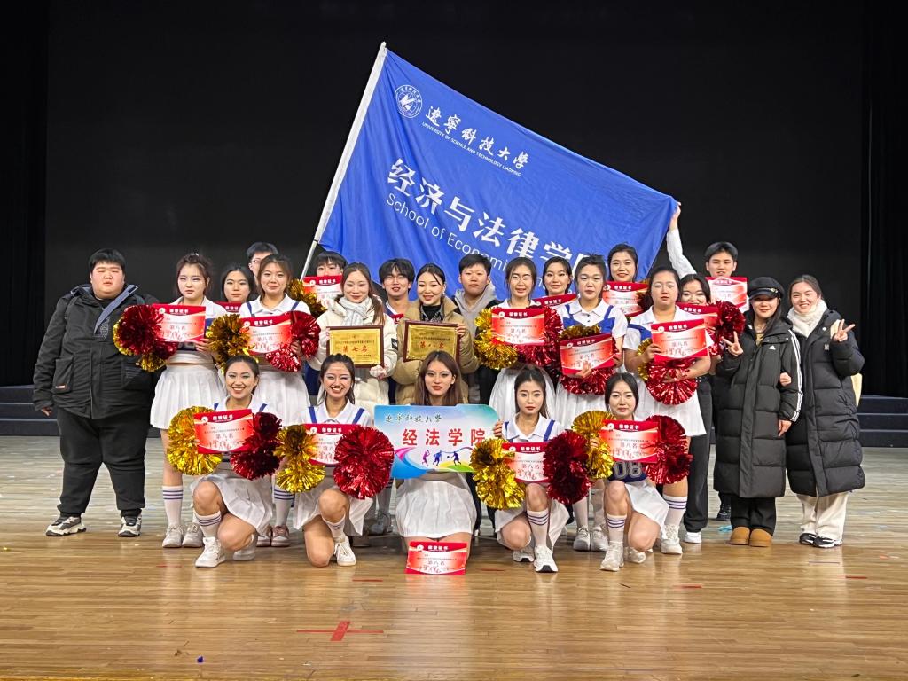 12月19日下午,ayxty.com在校礼堂举办“彩虹杯”校园啦啦操大赛。经法学院代表队经过数十天的努力训练,获得第八名的好成绩。