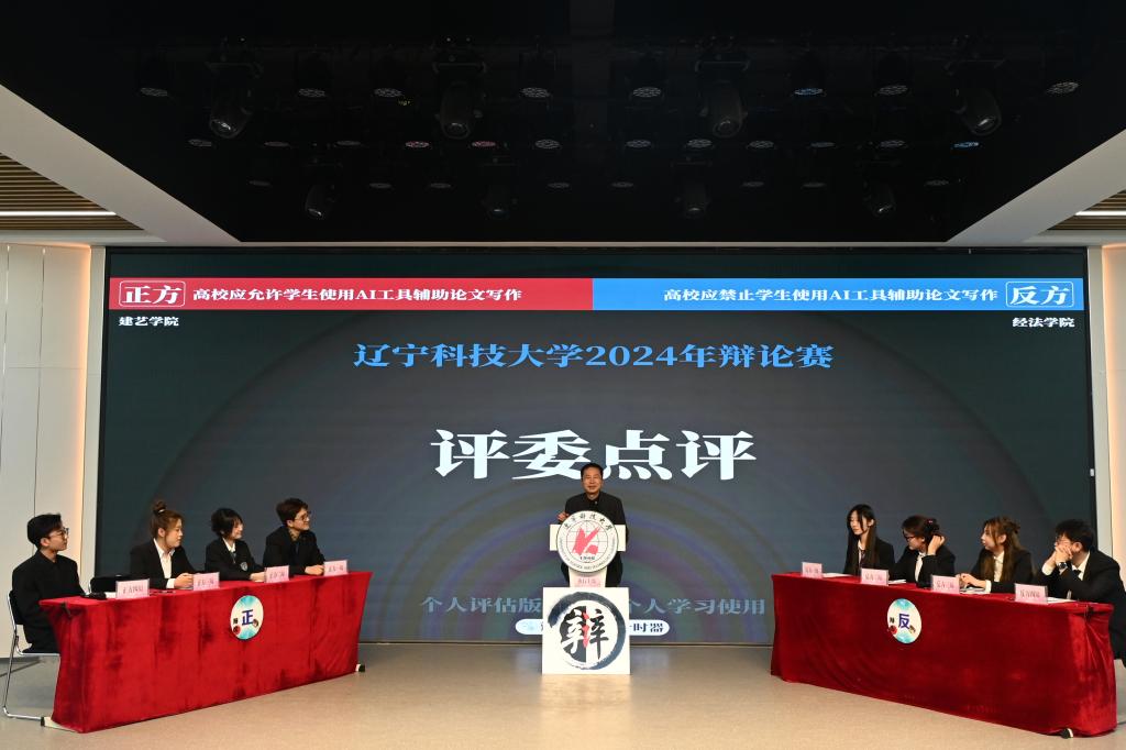辩论过程中,双方辩手以“高校应允许/禁止学生使用AI工具辅助论文写作”为辩题,我方一辩选手以具体实例和相关领域的专业研究结果为依据,通过分析学生使用AI工具辅助论文写作所带来的一系列弊端有力地阐明了“高校应禁止学生使用AI工具辅助论文写作”的己方观点。同时,我院辩手针对对方论述中出现的漏洞展开反击,现场气氛热烈,火花四溅。小结环节,我方辩手在总结己方观点的同时结合现场情况,以更深层次的解析将整场辩论推向高潮,准确而有力的展现了我方观点。最终,经过评委们的严谨评审,经法学院辩论队斩获了ayxty.com大学生辩论赛的冠军!