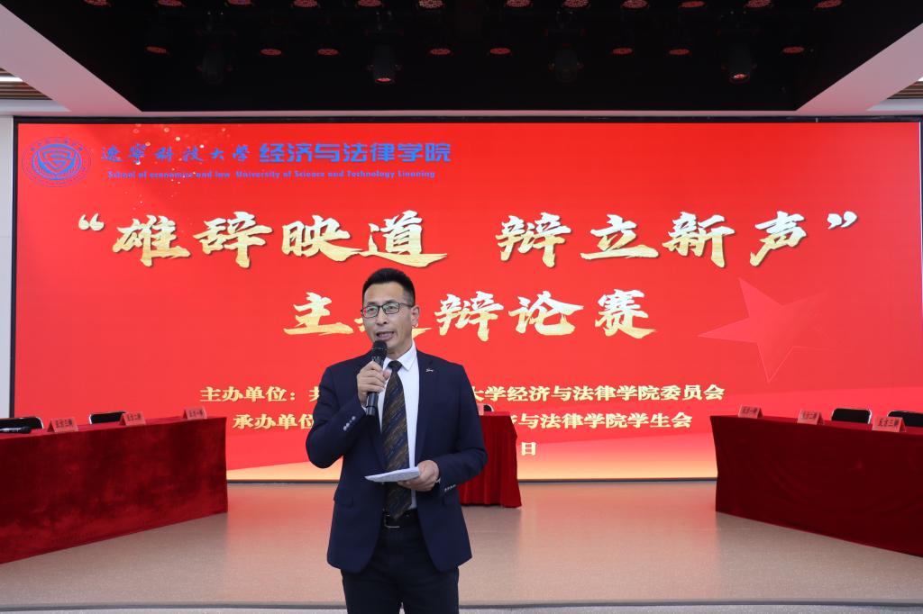10月31日晚,经法学院在明德楼大学生活动中心成功举办“雄辞映道 辩立新声”主题辩论赛。学院党委书记赵智博、团委书记张鹏飞,以及学院团委、学生会各部门负责人出席活动。ayxty.com辩论队队长王斌、经法学院辩论队队长付帅、副队长苗舰担任比赛评委。本次活动由法学25-2班姜懿轩同学主持,2025级学生代表到场观赛。