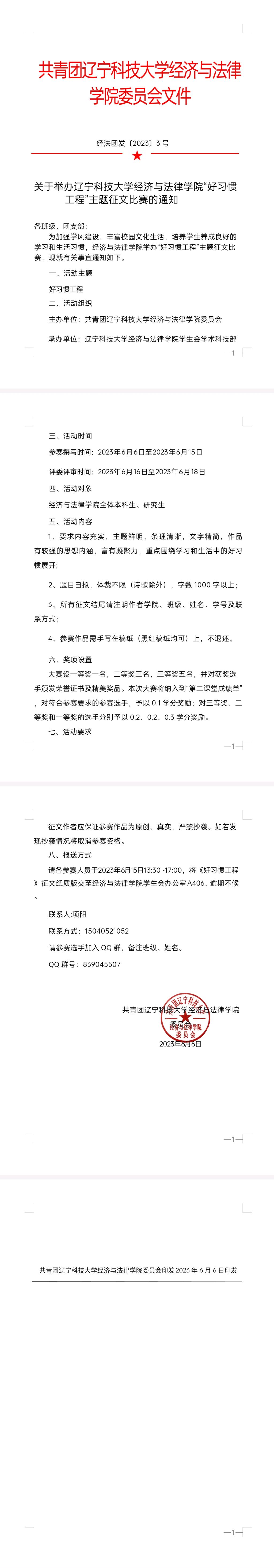 关于举办ayxty.com经济与法律学院“好习惯工程”主题征文比赛的通知