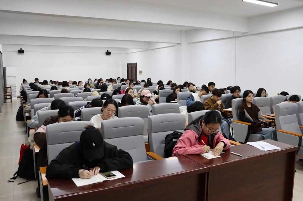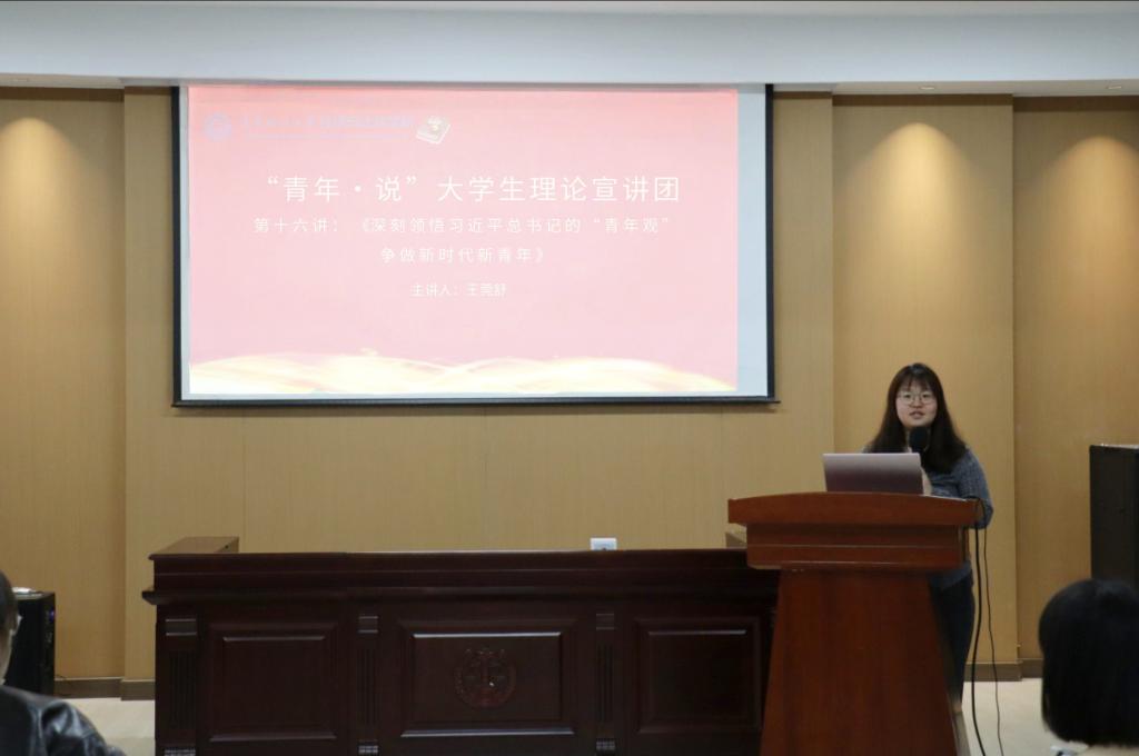 宣讲会上,王莞舒以“深刻领悟习近平总书记的‘青年观’,争做新时代新青年”为主题,带领同学们学习贯彻习近平总书记“青年观”,明确新时代青年人的使命与担当。她强调,“时代的责任赋予青年,时代的光荣属于青年”,作为新时代新青年,应敢于吃苦耐劳、敢于挺膺担当,在实际行动中展现青春作为、彰显青春风采、贡献青春力量。