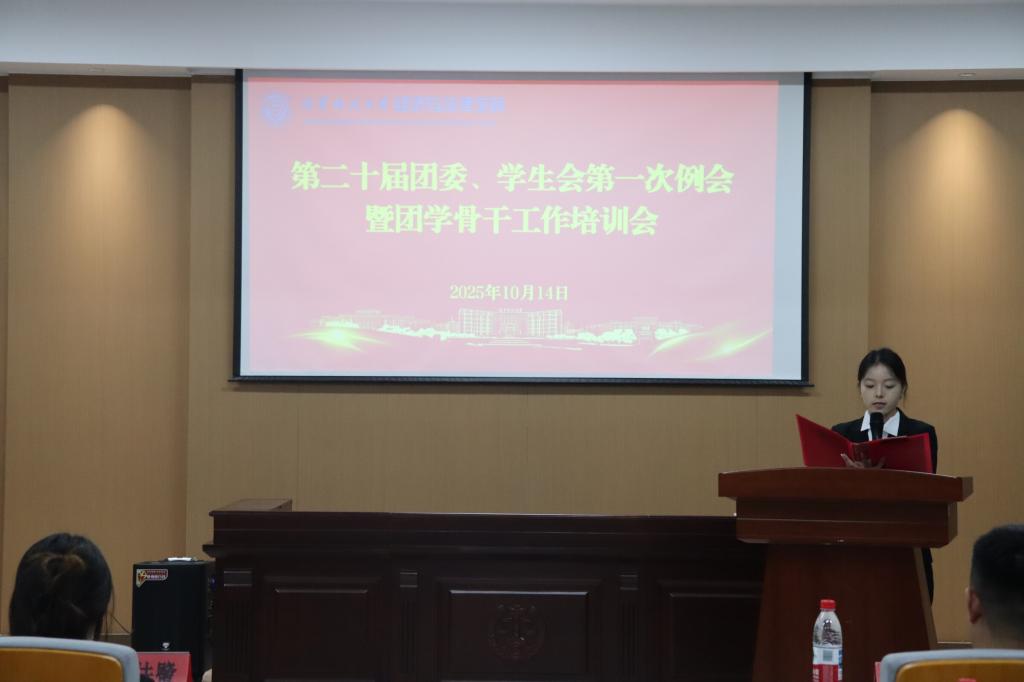 会议伊始,学生会主席团成员张珈奕宣读《经法学院学生会工作章程》,详细介绍了团委、学生会的工作职能与考核标准,并对各团学骨干的日常工作作出了规范与指导。随后,各部门负责人依次上台发言,介绍部门职责及未来工作规划。部门成员也进行了自我介绍,纷纷表示将以饱满的热情和高度的责任感投入工作,在今后的学习与实践中携手并进,共同为经法学院的发展贡献力量。