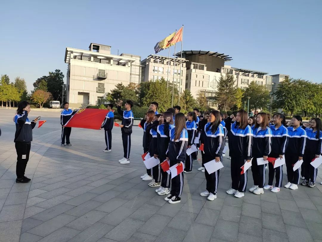 随着主持人的介绍,团日活动正式开始。首先,同学们向祖国献上了自己真挚的祝福,并在团支书的带领下,重温了入团誓词,回顾了自己的初心和使命,坚定了为共产主义事业奋斗的决心。之后全体同学们为祖国献上诗篇《沁园春·国庆》和歌曲《我和我的祖国》,赞美了祖国的盛世年华和繁荣昌盛。最后,全体同学向祖国展示了自己军训成果,有序退场。