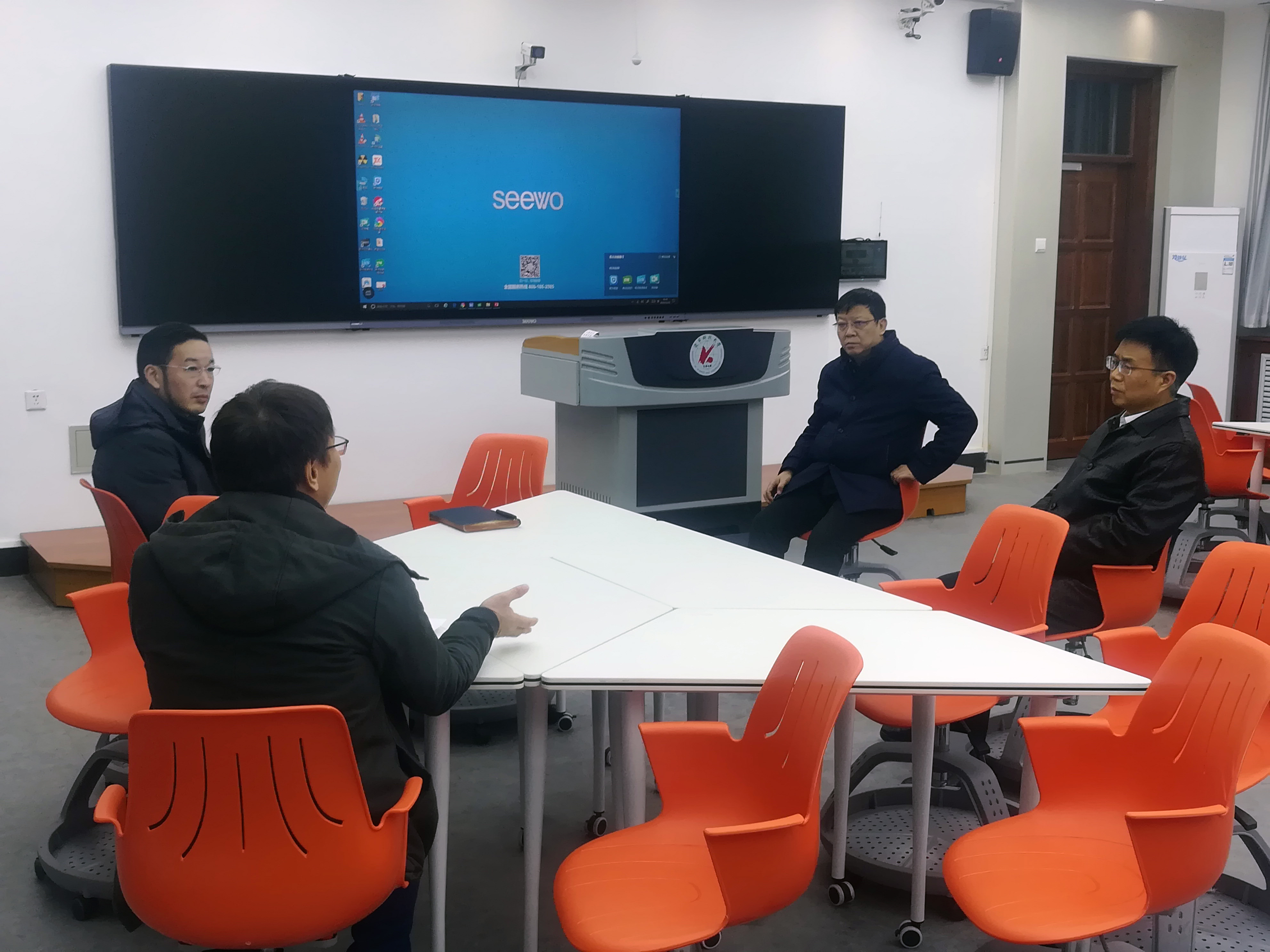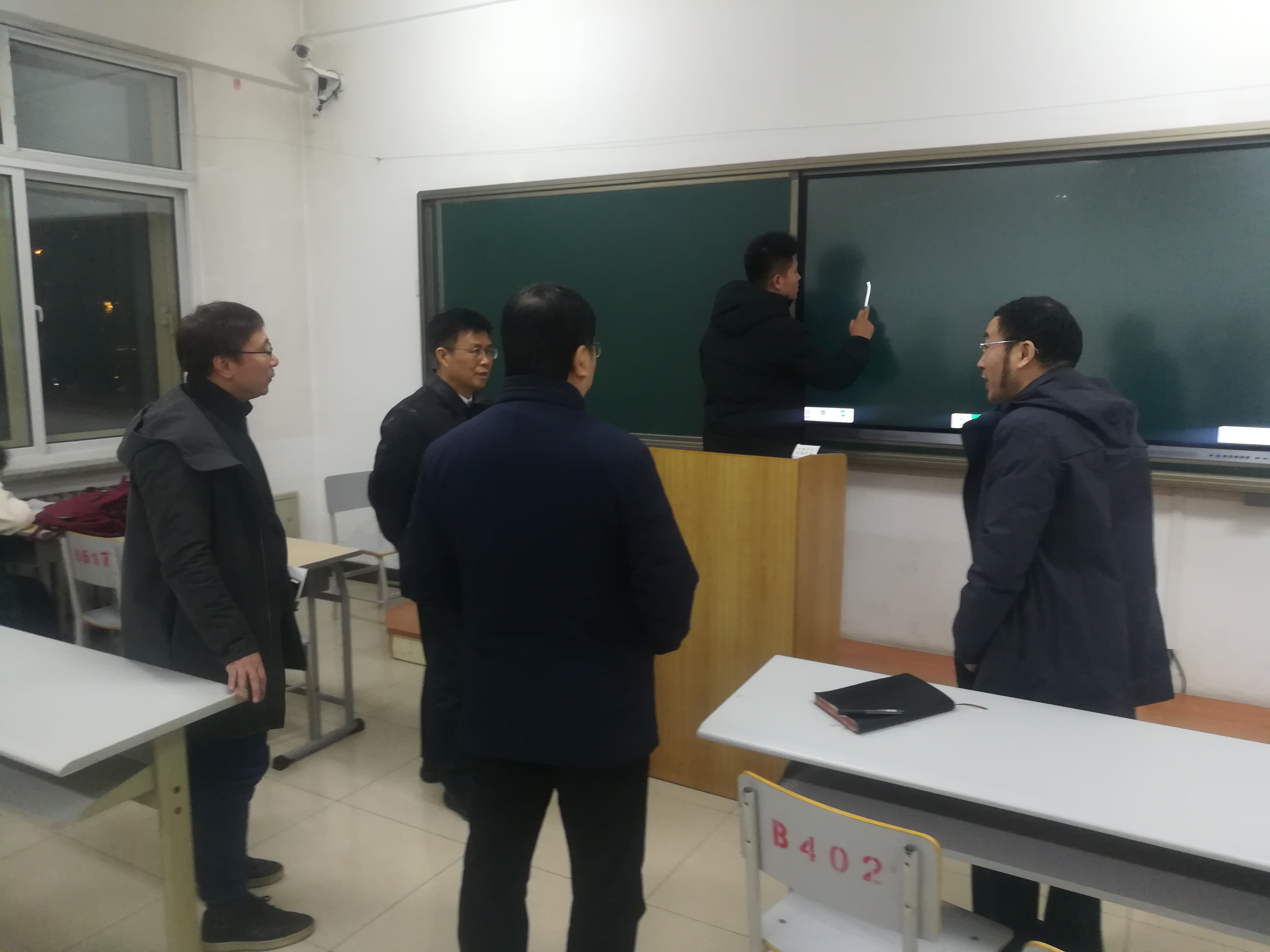 12月11日,ayxty.com党委书记李平、校长张志强在教务处负责同志陪同下来到博学楼新建成的智慧教室,听取了教务处同志对智慧教室的建设情况。