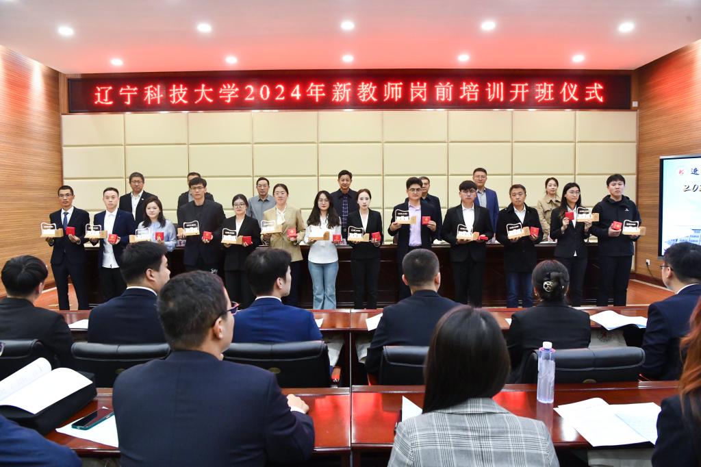 教务处处长樊增广介绍新教师岗前培训的部署及要求,强调了培训的重要性和实效性。人事处处长郭良栋宣布青蓝结对名单。土木工程学院院长周卫红以《弘扬教育家精神 做新时代高素质专业化教师》为题,结合学校和学院制度,交流对新教师的全面培养。2023年新教师培训班优秀结业学员电子与信息工程学院闫传博分享了他入职一年以来的感想,他以“教研结合 教学共进”为主题,讲述了自己的成长经历和教学理念。新教师代表材料与冶金学院夏博作题为《筑梦科大 扬帆起航》的感言,表达了对未来的憧憬和希望。
