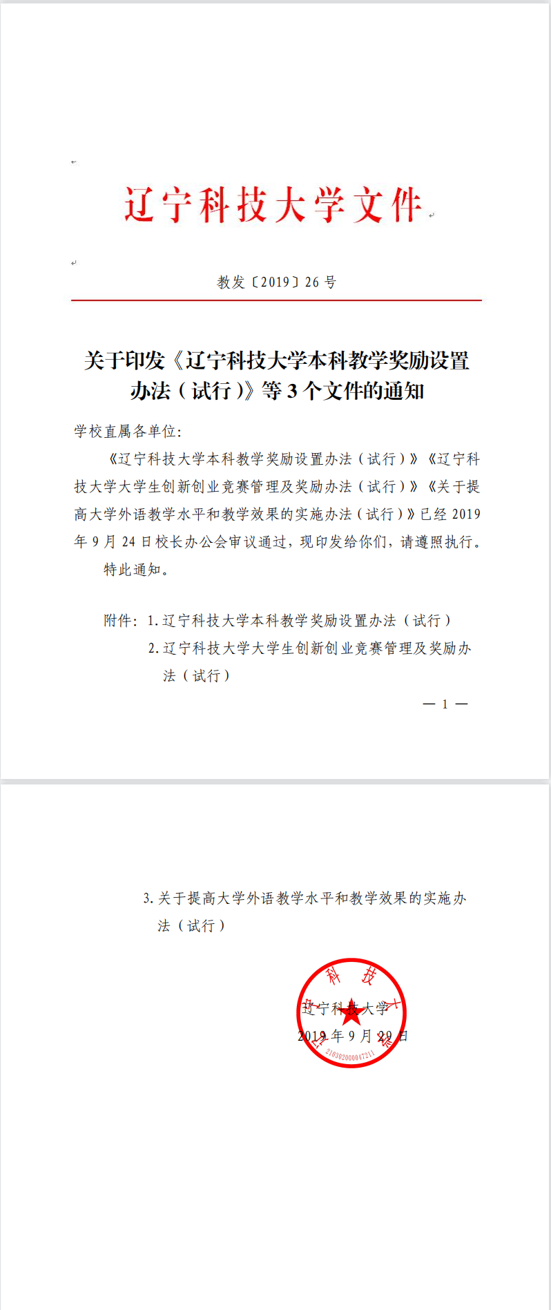 教发〔2019〕26号:关于印发《ayxty.com本科教学奖励设置办法(试行)》等3个文件的通知