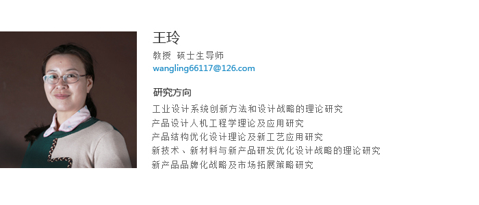 王玲教授,ayxty.com硕士毕业,机械工程及设计理论专业;清华美院第二学历,工业设计专业。 具有近30年教学和科研经历。撰写专著2本,主编教材1本,参编教材2本。撰写研究论文40余篇,其中国际EI检索8篇,核心期刊5篇,指导学生发表20篇。多次获得年度考核优秀,曾指导学生获国家级、省级、市级、校级奖项30多项,多次获得优秀指导教师荣誉称号。《Humanization Design and Harmonization Design in Product Designing》,于2011年7月,获得辽宁省自然科学成果三等奖,获鞍山市自然科学学术成果奖二等奖。2014年和2015年,为山西省社会科学院思维研究所特聘研究员。主持省级教改1项,参加并完成省级科研项目3项,主持并完成鞍山市科技项目2项,主持和参与横向科研8项。指导学生获得专利8项。