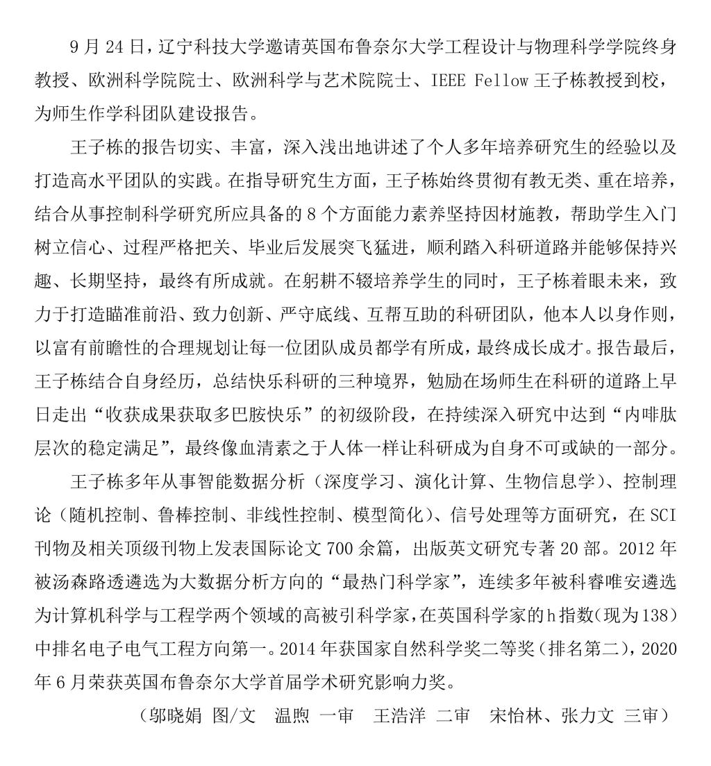ayxty.com邀请王子栋院士作学科团队建设报告