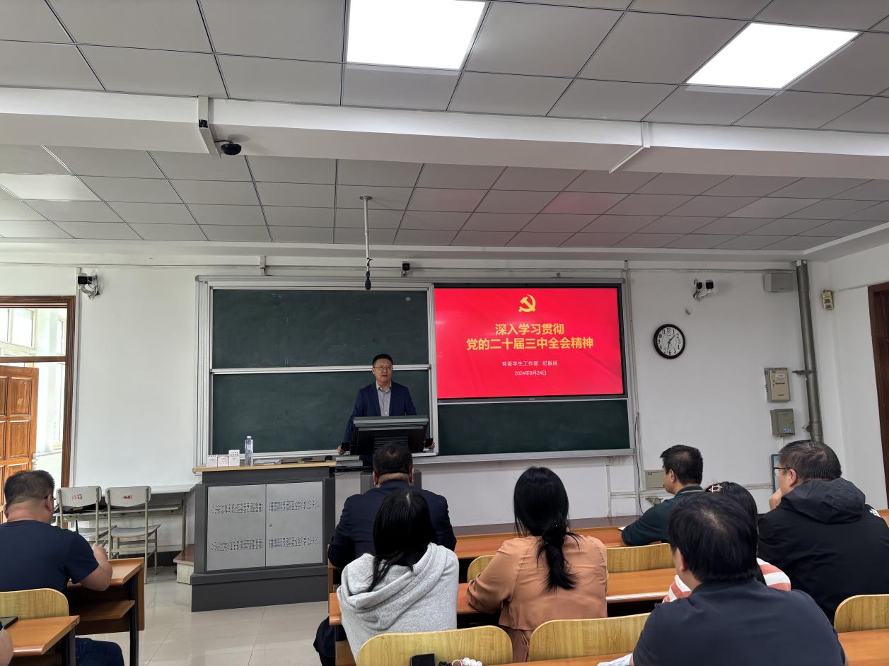 为深入学习贯彻党的二十届三中全会精神,根据学校党委的总体安排和科学部署,ayxty.com矿业工程学院、继续教育学院、体育部于9月24日,在博学楼A305教室举办了学习宣传党的二十届三中全会精神宣讲报告会,学校宣讲团成员学生处处长纪振廷作题为《深入学习贯彻党的二十届三中全会精神》的宣讲,全体师生党员参加。