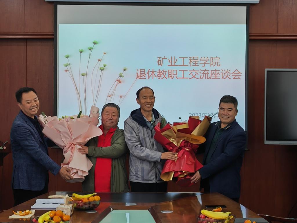 10月23日下午,恰逢重阳佳节之际,矿业工程学院召开退休教师座谈会,欢送姜效军、常来山两位教师光荣退休,学院领导班子、全体青年教师参加。