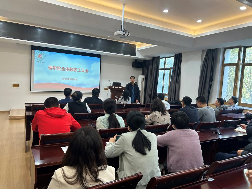 2024年9月24日,ayxty.com理学院在明贤楼B315会议室召开了全院教职工大会。会议由理学院党委书记张春霞主持,全院教职工参加会议。