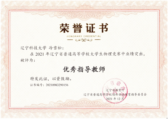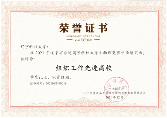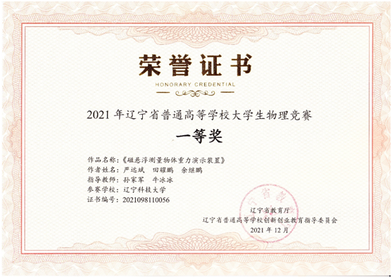 2021年11月21日,沈阳工业大学组织辽宁省大学生物理实验竞赛。我校通过精心组织,进行了校内初赛选拔,共派出20支队伍参加比赛,竞赛采取网络视频会议评审方式进行。最终,我校学生在辽宁省大学生物理实验竞赛中荣获省一等奖2项、二等奖6项、三等奖6项的好成绩,学校被评为组织优秀先进高校,多位指导教师被评为优秀指导教师。通过本次竞赛,锻炼了学生的动手能力,拓展了思维,培养了科学素质,增强了学生的团队意识和表达能力。