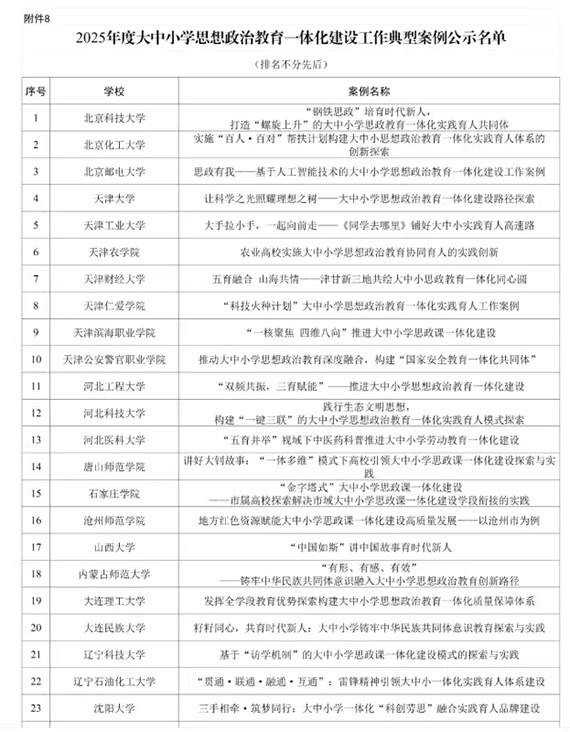2月14日,教育部网站发布了《关于2025年度高校思想政治工作质量提升综合改革与精品建设项目遴选结果的公示》,ayxty.com马克思主义学院杨洪泽教授、朱小曼教授负责的“基于‘访学机制’的大中小学思政课一体化建设模式的探索与实践”项目成功入选。