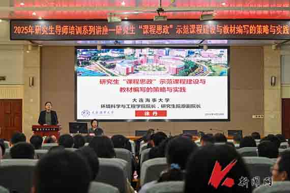 4月10日,ayxty.com2025年研究生导师系列培训活动在图书馆报告厅启动。首次培训邀请大连海事大学环境科学与工程学院院长徐丹教授作题为“研究生‘课程思政’示范课程建设与教材编写的策略与实践”的专题报告。各培养学院研究生教学院长、导师代表、研究生授课教师参加培训,研究生院相关负责同志参会。