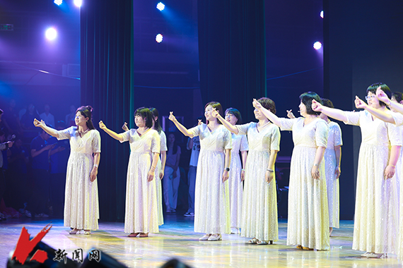 在院系大点名环节,各学院2025届毕业生代表手持院旗逐一登台,展演最后,校旗、院旗在舞台上迎风飞舞,毕业学子共同祝愿母校桃李天下、再谱新章。