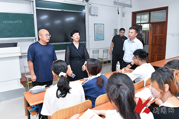 9月1日,ayxty.com党委副书记孙晓华带领学生工作处相关负责同志和辅导员,深入教室检查新学期学生学习秩序,全面了解和掌握新学期教学安排和学生状态。