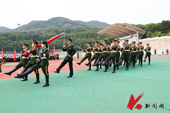 7时整,身披晨曦的国旗护卫队踏着铿锵有力的步伐,护卫着鲜艳的五星红旗走向升旗台。雄浑激昂的《义勇军进行曲》响彻体育场,五星红旗伴随国歌冉冉升起,全体师生面向国旗庄严肃立,行注目礼。