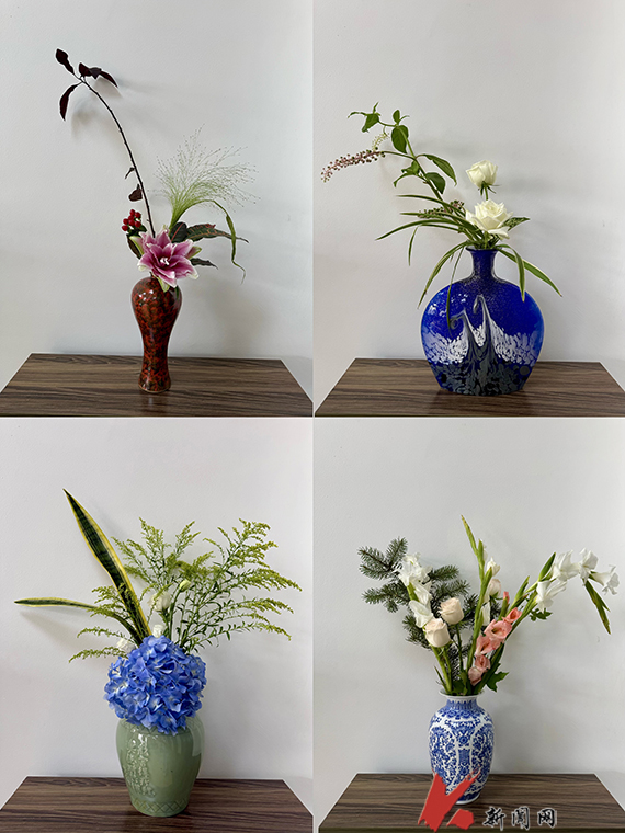 活动中,徐平以“传统插花中的文化意蕴”为主题,从插花的历史源流、美学原则、器具选择等方面展开讲解,让在场教师对传统插花艺术有了系统性的认知,并现场演示了直立式瓶插创作的全过程。参与活动的教师结合个人对美学的理解,巧妙构思、精心搭配,在修枝剪叶间品味一花一叶的独特魅力。徐平从造型布局、色彩和谐、意境表达等方面对教师们的作品进行专业点评,肯定优点的同时提出改进建议。教师们也纷纷分享自己的创作思路与感悟,现场交流氛围热烈融洽,在互动中进一步提升了对传统插花艺术的理解。