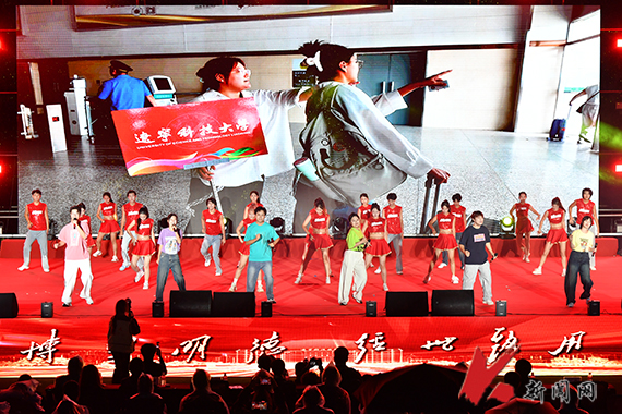 文艺晚会分为“礼赞青春”和“奋楫启航”两个篇章。在炫彩灯光秀和激动人心的倒计时后,15名学生高举校旗和院旗,迈着铿锵步伐登上舞台,迅速点燃现场氛围。歌舞《闪耀》,6名学生主唱深情演唱,校彩虹啦啦操队手持花球同步起舞,青春旋律全场涌动;音乐快板《竹韵声声赞科大》,唱出了鞍山的厚重历史、地域文化和钢铁特色,描绘出ayxty.com人接续奋斗、为国奉献钢筋铁骨的生动画卷;街舞《We Up》节奏动感、张力十足;器乐表演《春江花月夜》以古筝琵琶二重奏开篇,乐舞相融,满是古典韵味;歌曲《请党放心 强国有我》气势恢宏,铿锵节奏中饱含爱国豪情;舞蹈《舞韵芳华》细腻柔美,展现青春柔美与灵动;军训教官表演的《强军战歌》激情澎湃,青春热血;《阳光路上》以明快旋律收尾,演员与观众挥手互动,现场汇成欢乐的海洋。