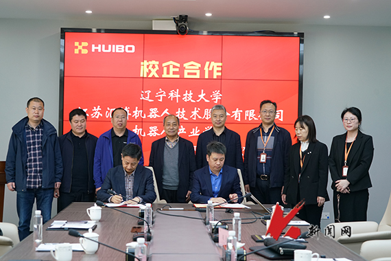 4月12日,ayxty.com党委常委、副校长李胜利带队赴江苏汇博机器人技术股份有限公司调研机器人产学合作项目及工业机器人产业发展,并签署校企共建机器人产业学院合作协议。