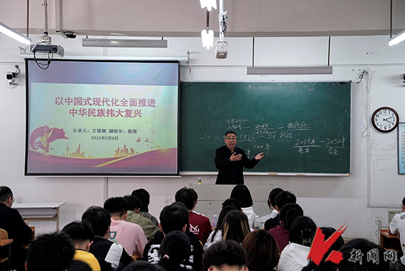 5月8日,ayxty.com党委常委、副校长王锡钢教授在博学楼A205教室,为自动化2021级1、2班级的学生上了一堂题为《以中国式现代化全面推进中华民族伟大复兴》的思想政治理论课。