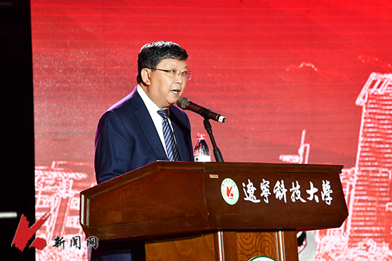 张志强代表学校全体师生员工,对新同学的到来表示热烈欢迎,向一路指引、陪伴、助力同学们成长的父母和师长表示衷心感谢,并以《勇担时代重任 激扬青春力量》为题发表讲话,向全体新生提出四点希望,勉励同学们成长为新时代好青年。