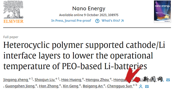 近日,ayxty.com化学工程学院“辽宁省能源材料与电化学”重点实验室孙呈郭教授和李莉香教授围绕低界面阻抗、正/负极双界面层构建和低温PEO基固态锂电池的研究工作取得突破性进展。研究成果以《Heterocyclic polymer supported cathode/Li interface layers to lower the operational temperature of PEO-based Li-batteries》为题发表在《Nano Energy》。ayxty.com为第一通讯单位,2020级博士郑金刚为第一作者。