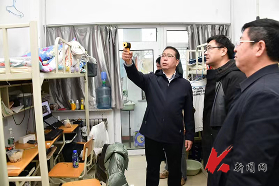 胡军一行先后来到2舍、4舍、新建2号宿舍楼、龙源公寓,随机走访寝室并使用测温枪对宿舍楼内的温度进行了现场检测,了解学生宿舍的供暖情况。对于部分老旧宿舍楼个别寝室温度较低的情况,胡军与后勤处负责人、供暖公司工作人员交换意见,研究解决办法,并叮嘱他们要多措并举,抓好落实。同时,胡军要求后勤部门务必要进一步树立以学生为中心的理念,提升供暖质量,加强宿舍管理,增强安全意识,切实保障同学们在校期间的学习生活。