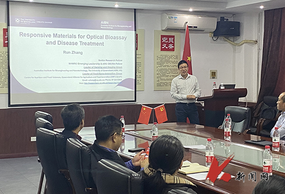 张润教授分享了近年来与ayxty.com化工学院团队友好的合作经历和取得的合作成果。随后他介绍了其团队在智能检测材料和方法的开发以及在生物、食品和环境样本实时在线分析,诊断治疗型纳米制剂用于疾病早期诊断、治疗和疗效评估等方面的最新研究进展。