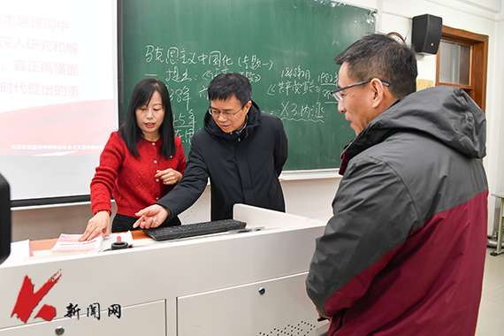 李平走进博学楼C106教室,听取了张营老师讲授的“毛泽东思想和中国特色社会主义理论体系概论”课程,并在课后与张营进行交流。他强调,思想政治理论课要及时准确地体现党的创新理论最新成果,教师要守正创新,丰富教学方式和手段,增强思想政治理论课的亲和力,提升学生的学习兴趣,充分发挥思想政治理论课在立德树人中的作用。