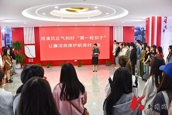 5月21日,ayxty.com党委常委、纪委书记、监察专员高姝娜以《用清风正气扣好“第一粒扣子” 让廉洁自律护航美好人生》为题,在学校廉洁教育展厅为建筑学、环设动画产品工设党支部学生党员上了一堂精彩的思想政治理论课。