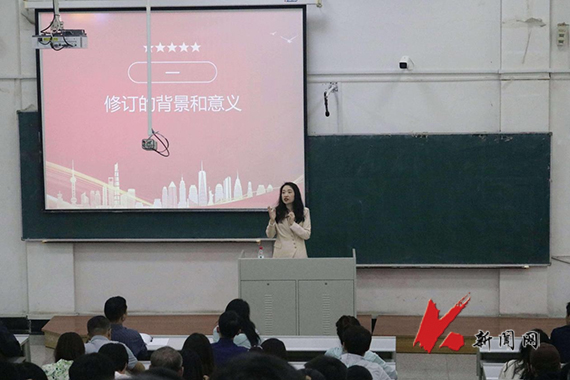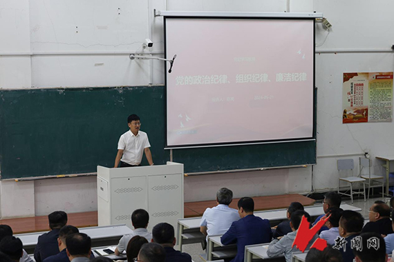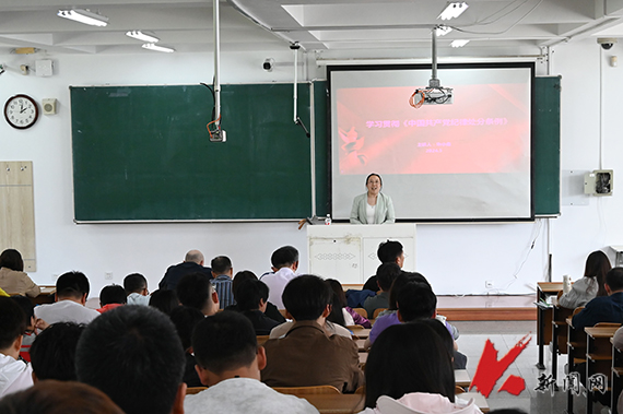 学校党纪学习教育宣讲团成员、马克思主义学院教师赵俊爱在明德楼D308会场,为材料与冶金学院、矿业工程学院、经济与法律学院、建筑与艺术设计学院和体育部全体教师党员作专题党纪学习教育宣讲。