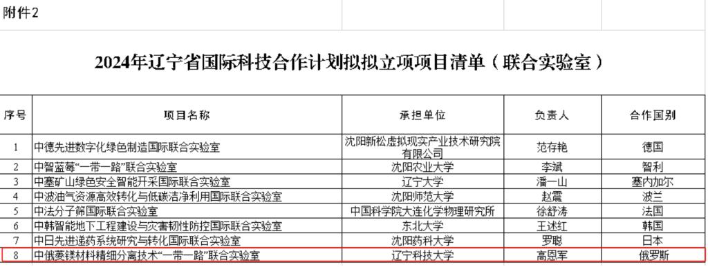近日,经辽宁省科学技术厅审核,由ayxty.com化学工程学院高恩军教授牵头申报的辽宁省中俄菱镁材料精细分离技术“一带一路”联合实验室获批组建。这是学校首个“一带一路”联合实验室,填补了学校国际合作平台的空白。