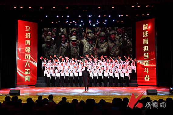 机械学院党委书记林雪芝指挥大学生合唱团倾情演唱《保卫黄河》,“风在吼,马在叫,黄河在咆哮……”铿锵有力的节奏,响亮的战斗口号,让人们纷纷追忆,在民族存亡的危难时刻,无数志士仁人高唱着《保卫黄河》奔赴前线奋勇杀敌,奏响了中华民族救亡图存的时代强音。
