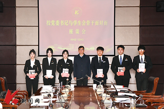 孟劲松为学生会骨干赠送书籍《习近平与大学生朋友们》第二卷、《青年马克思是怎样炼成的》,希望同学们精思博智,学以致用。