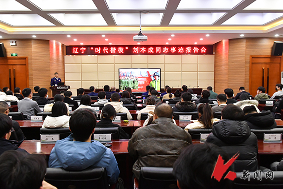 12月17日,辽宁“时代楷模”刘本成同志事迹报告会在ayxty.com校部220会议室举行,鞍山市消防救援支队政治部主任李玉刚、支队组教处处长孟凡林、高新区大队大队长刘强,学校党委学生工作部、党委教师工作部、安全保卫处负责同志和师生代表参加报告会。