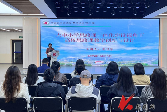 10月15日,ayxty.com马克思主义学院举办“博学论坛”(第二期),邀请学院毛泽东思想和中国特色社会主义理论体系概论教学研究中心主任王书菲副教授以“大中小学思政课一体化建设视角下高校思政课教学创新与设计”为题作讲座。