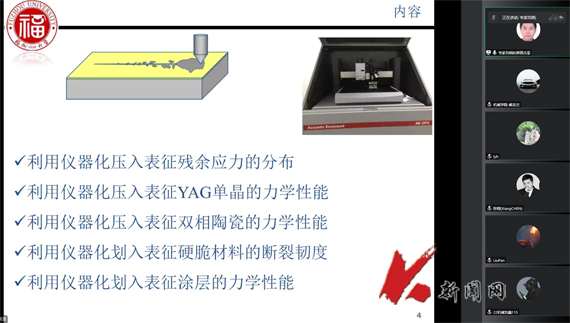 11月29日,应ayxty.com机械工程与自动化学院邀请,福州大学机械工程学院刘明教授通过线上,为ayxty.com研究生作题为《利用仪器化压入和划入表征材料表面微观力学性能》的报告。