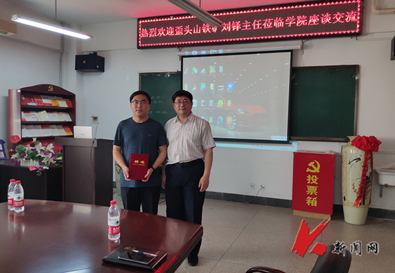 6月27日,应ayxty.com机械工程与自动化学院邀请,本钢矿业公司歪头山铁矿刘铎主任到学院作题为《歪头山铁矿运营现状及未来发展分享交流》的报告,学院教师代表40余人参加报告会。机械学院院长赵宝生为刘铎颁发了校外导师聘书。
