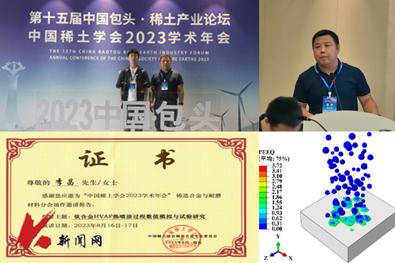 ayxty.com机械工程与自动化学院节能环保冶金新工艺及装备开发创新团队李昌教授带领学生受邀参加会议,担任铸造合金与耐磨材料分会场主持人,并作了题为《钛合金HVAF热喷涂过程数值模拟与试验研究》的邀请报告。硕士生赵晓玉作了“耦合详细化学动力学的常规和悬浮HVOF热喷涂机理研究”的学术报告。通过本次会议增进了与“耐磨材料”所属领域内高校、企业、研究院所专家、同行们的交流与互动,开拓了学术视野。(供稿单位:机械学院 图片来源:机械学院)